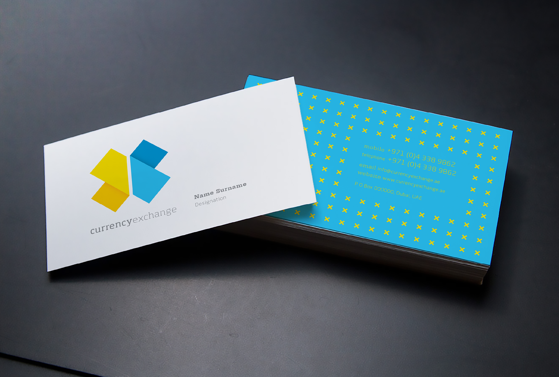 Brandmark and visual language development for a currency exchange service in the UAE. Commissioned by Jansen Harris. Completed in 2013.