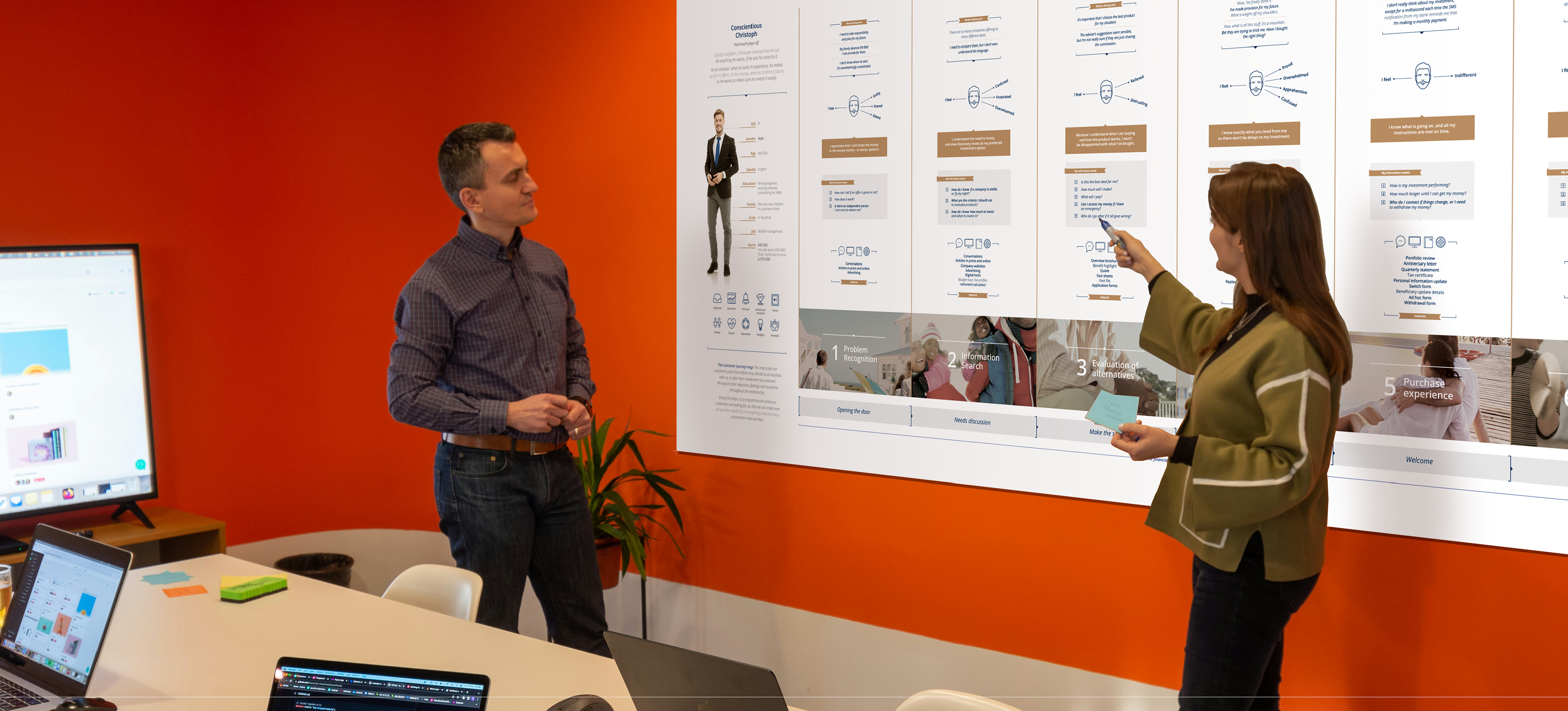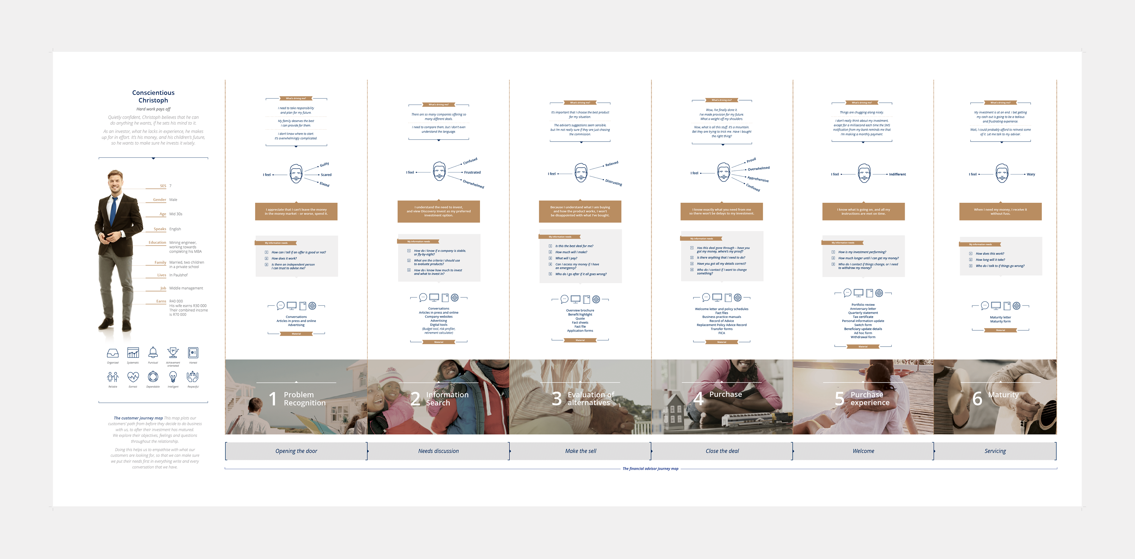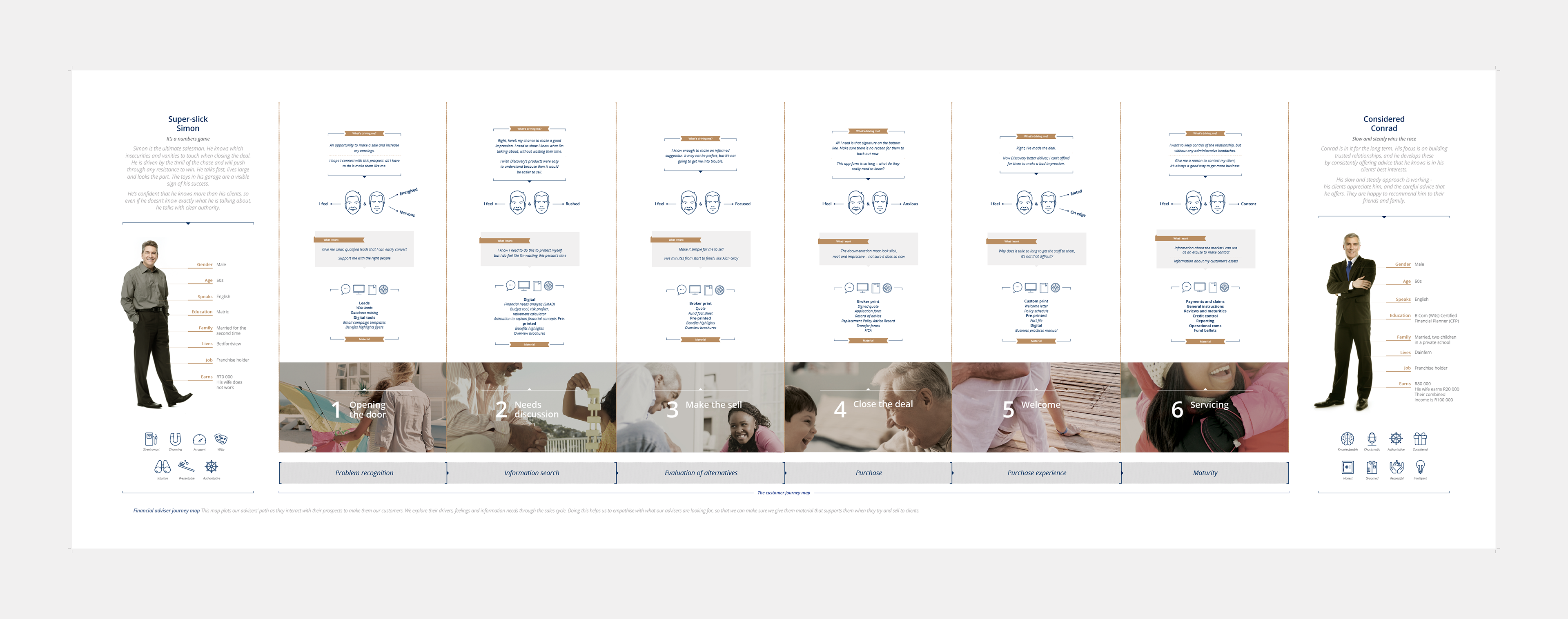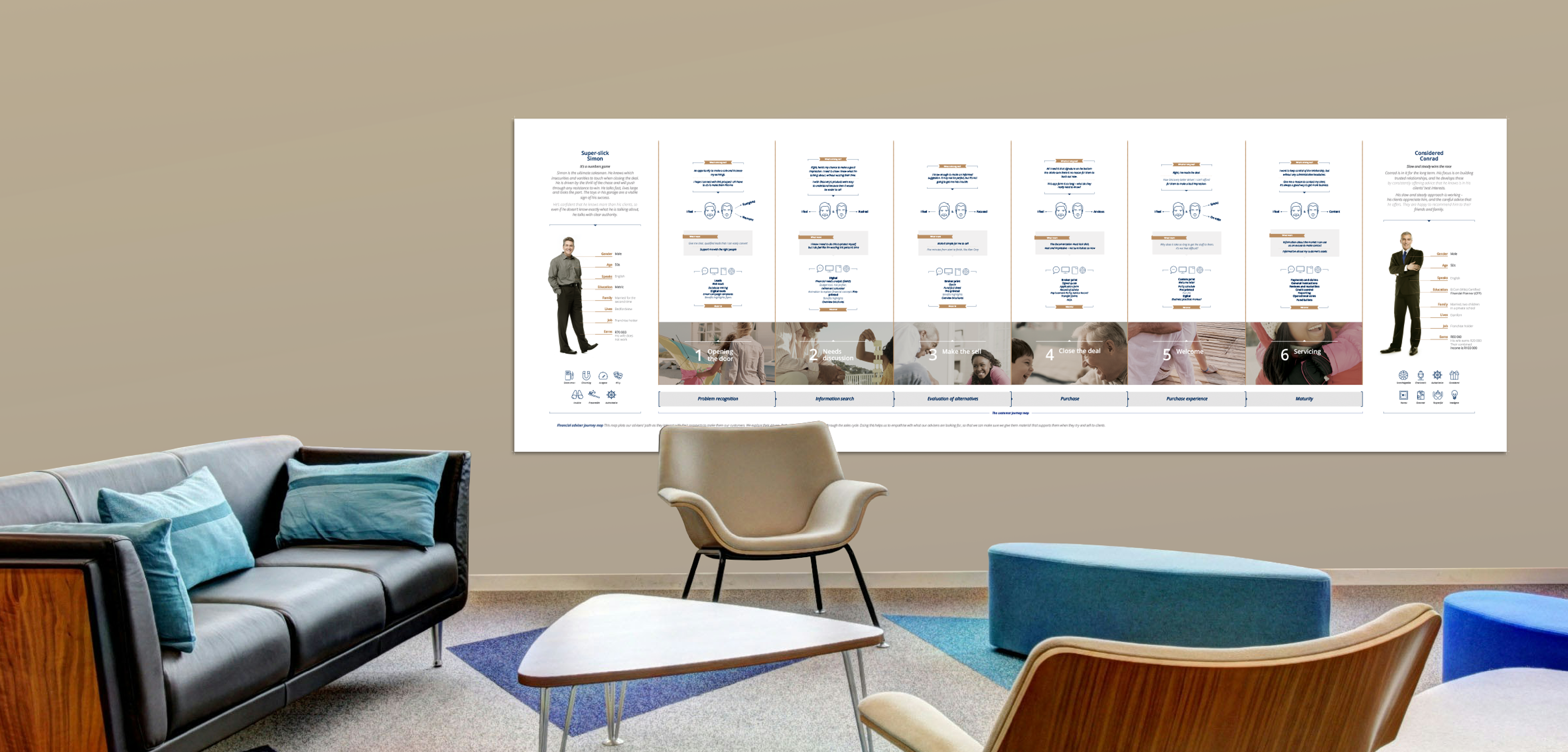 A series of posters visualising customer journeys for internal training, developed for Discovery Invest. Commissioned by Simplified. Completed in 2018.