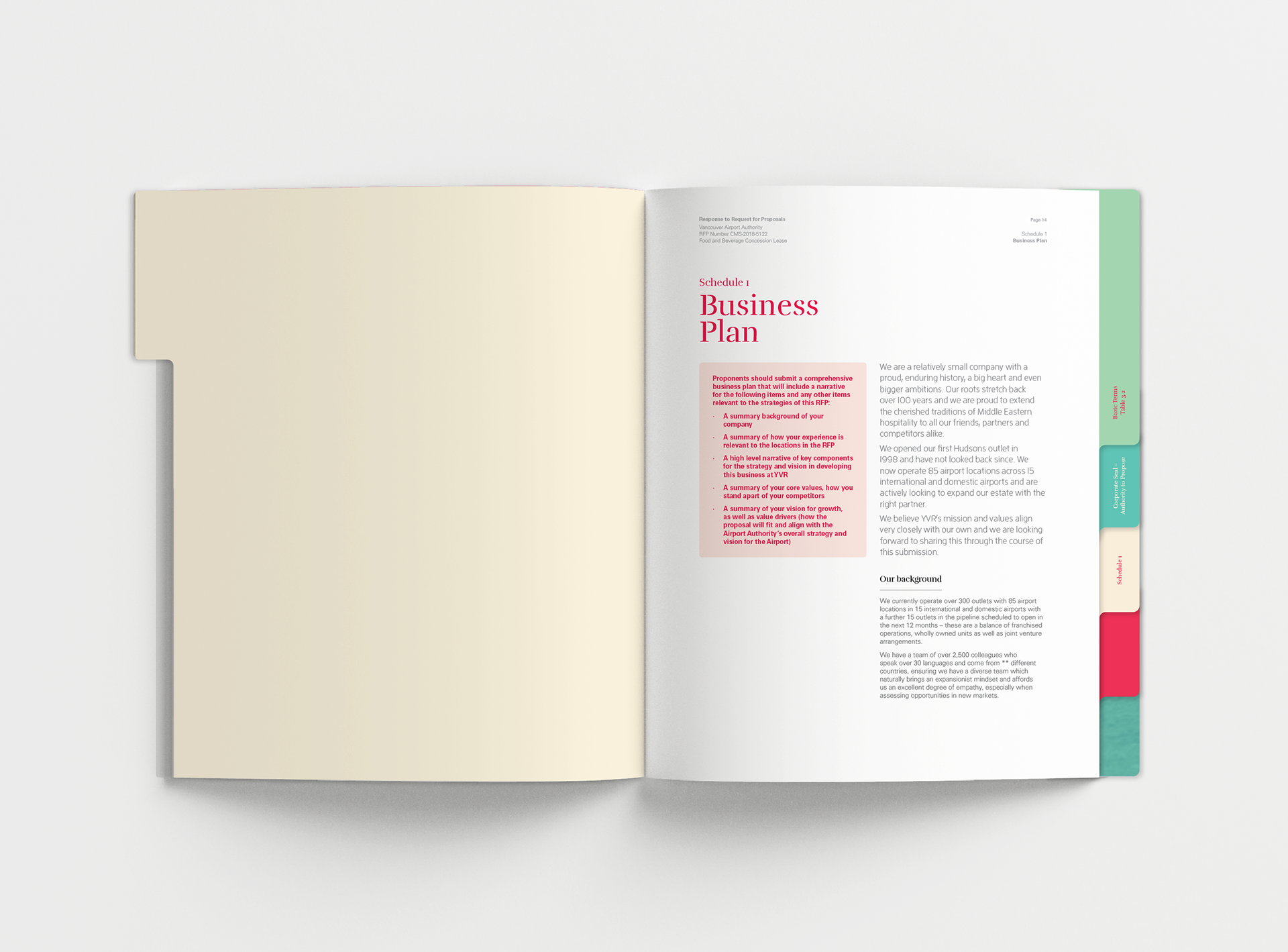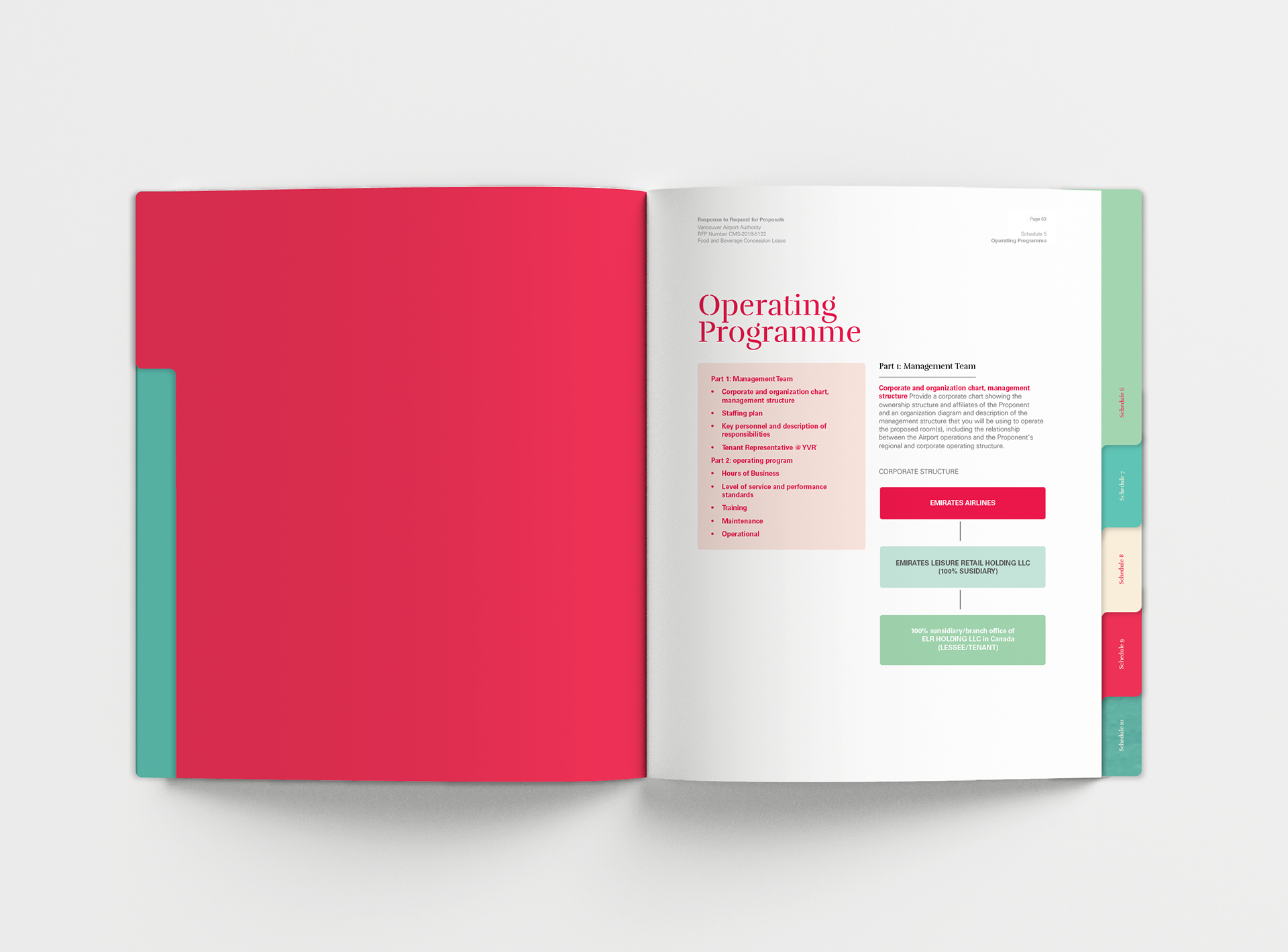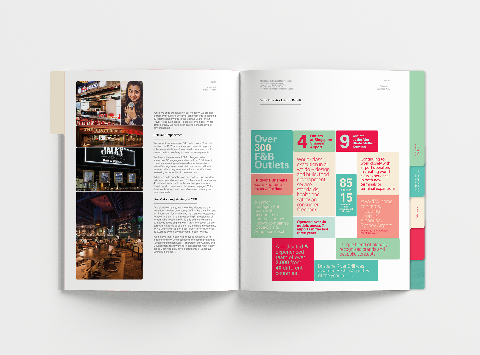 Design and layout of a bid document for Emirates Leisure Retail. Commissioned by JansenHarris. Completed in 2018.