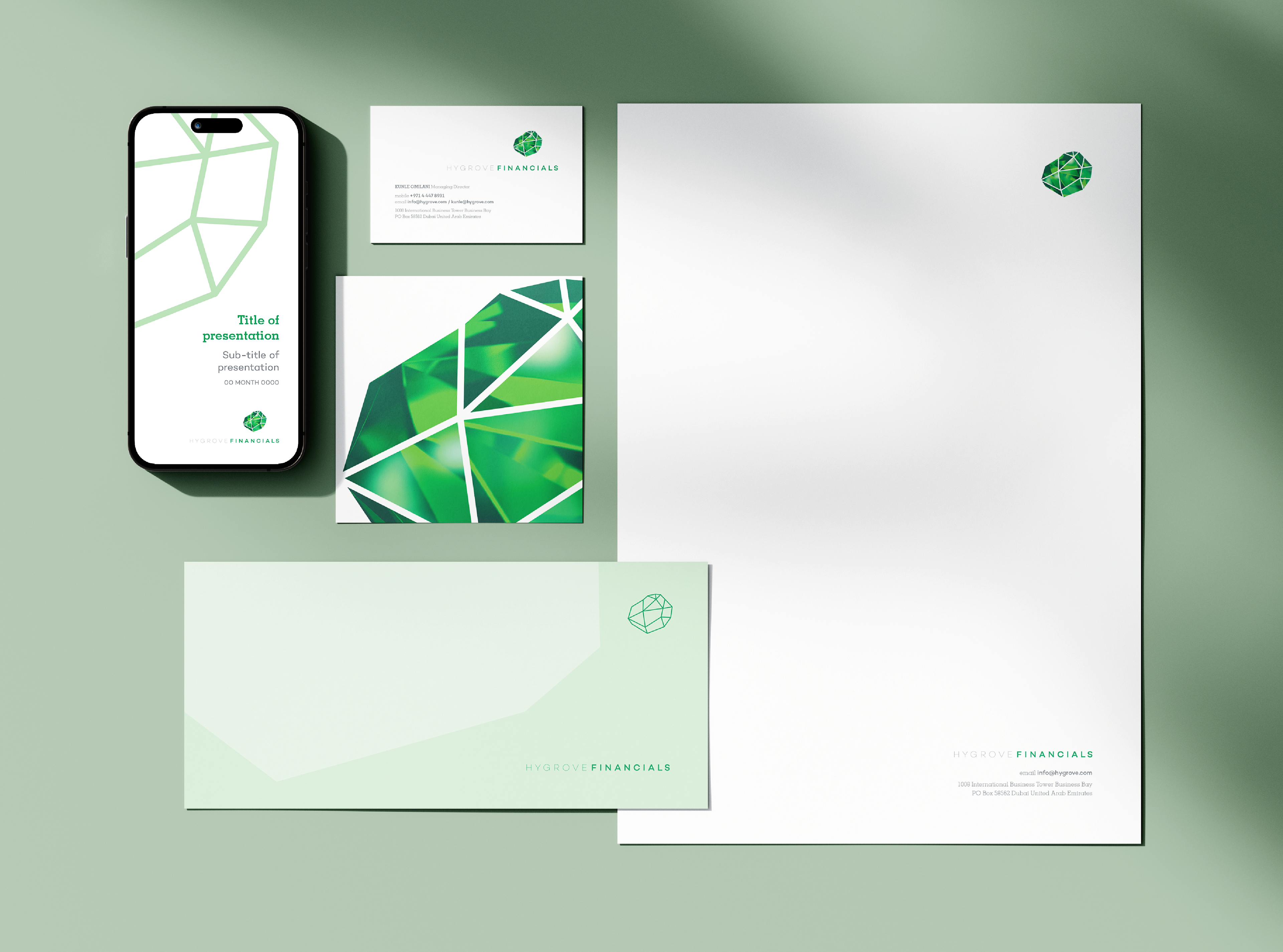 Brand development for Hygrove Holdings, a diversified investment company specialising in sustainable natural resource ventures. Commissioned by Ellen Grace & Co. Completed in 2015.