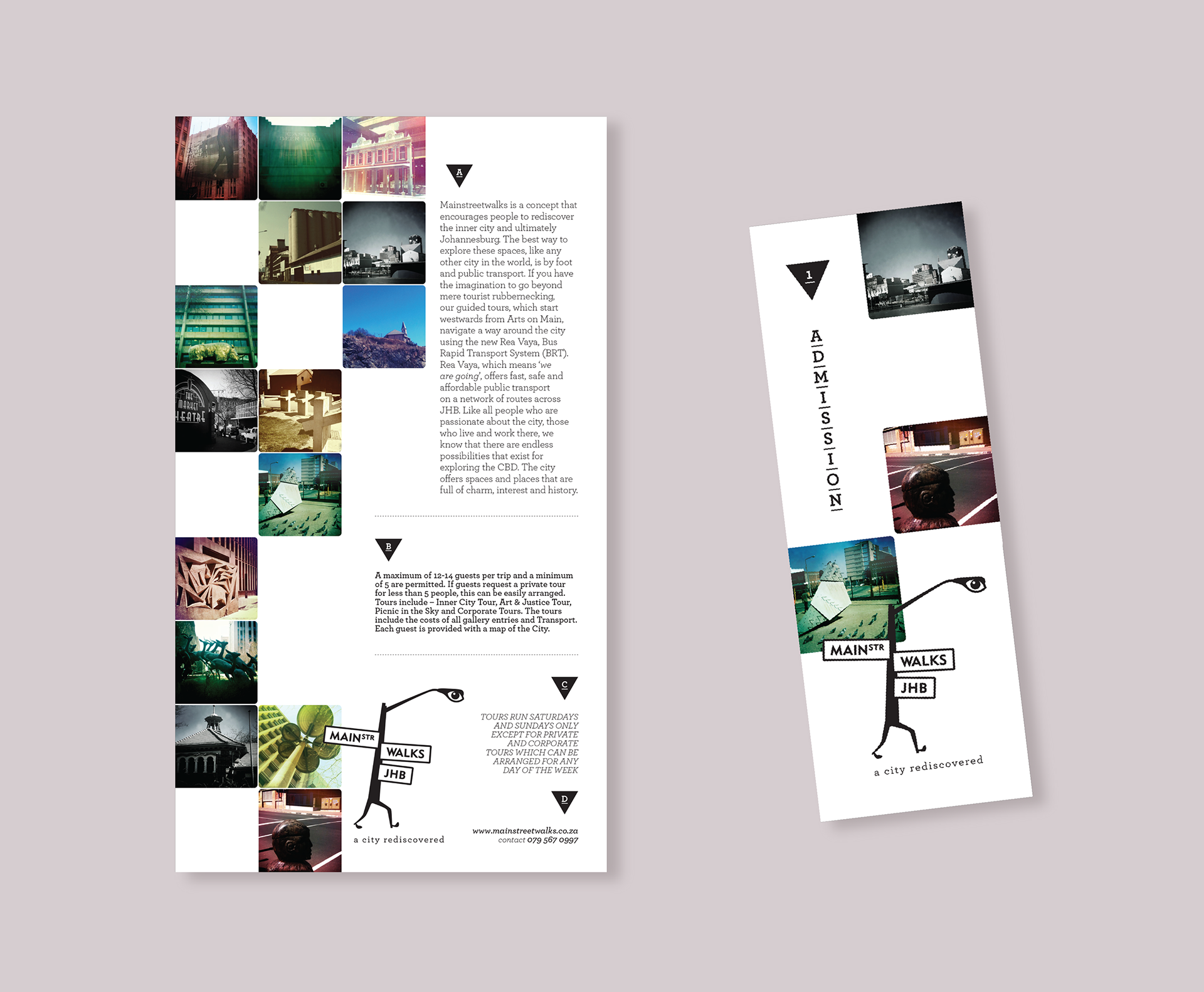 Identity and visual language design for an inner city walking tours company based in Johannesburg, South Africa. Commissioned by Love Jozi. Completed in 2010.