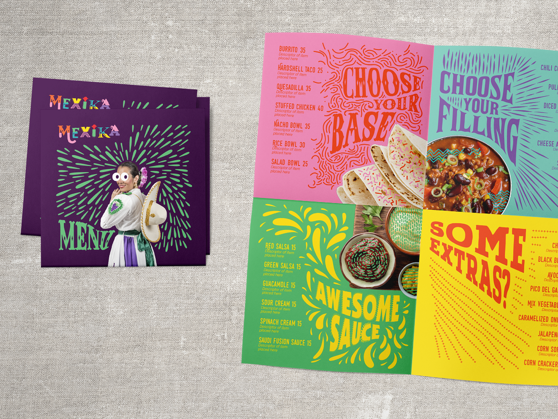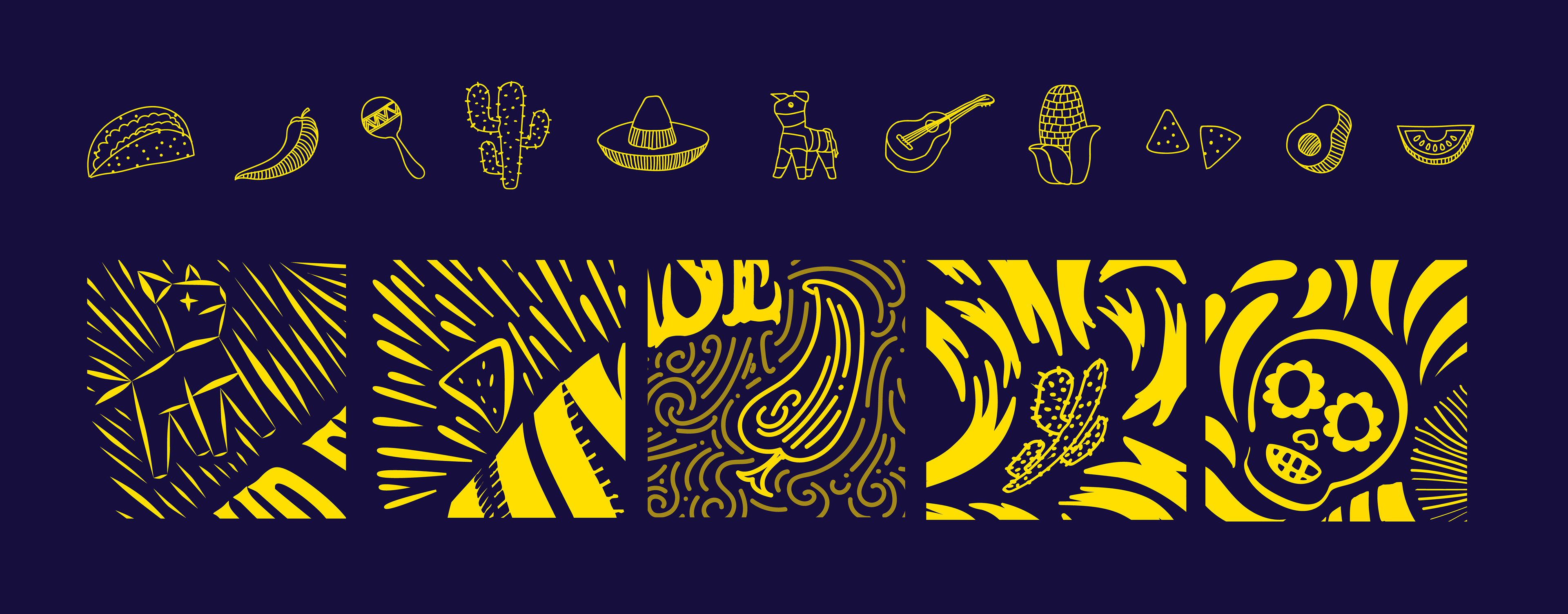 Brand development for a mexican themed restaurant in the United Arab Emirates. Commissioned by Jansen Harris. Completed in 2017.