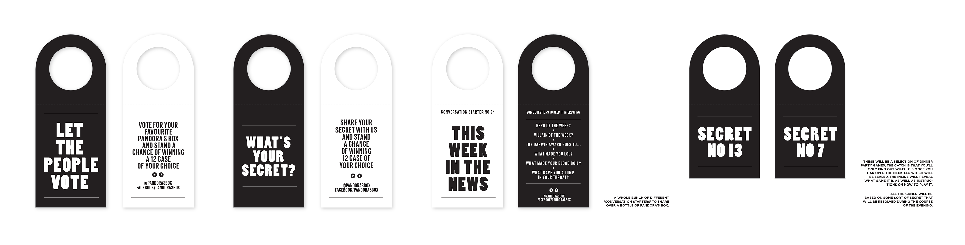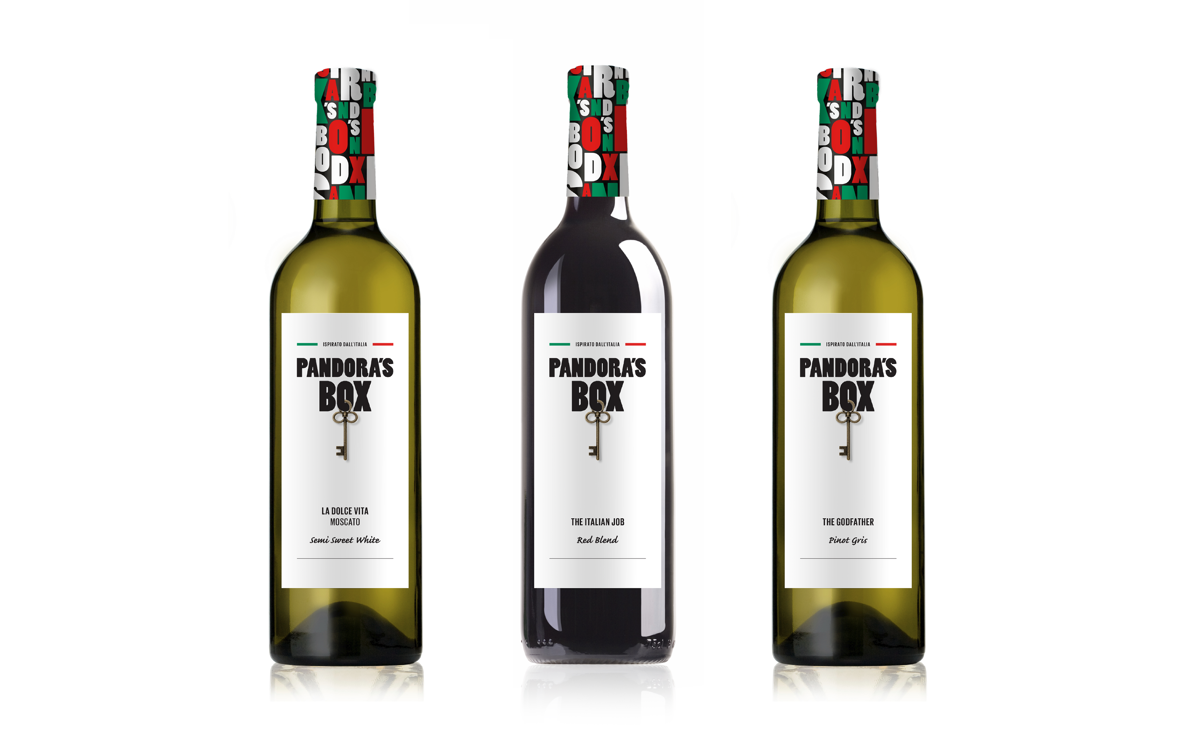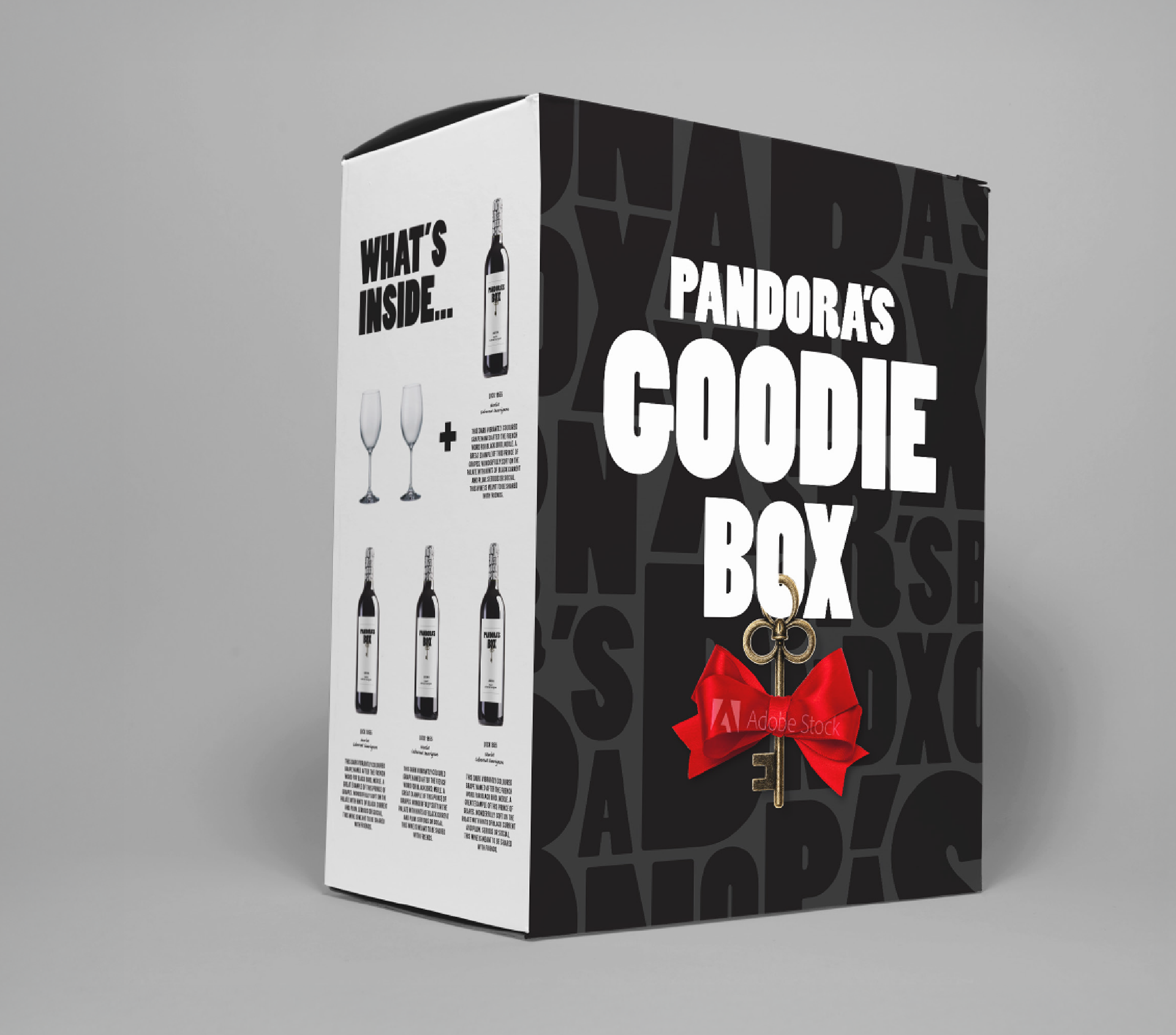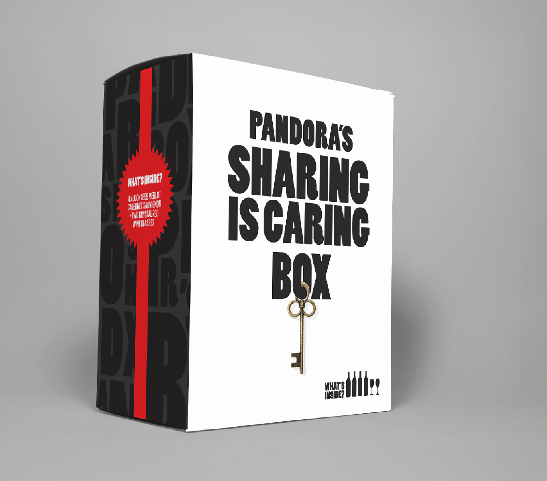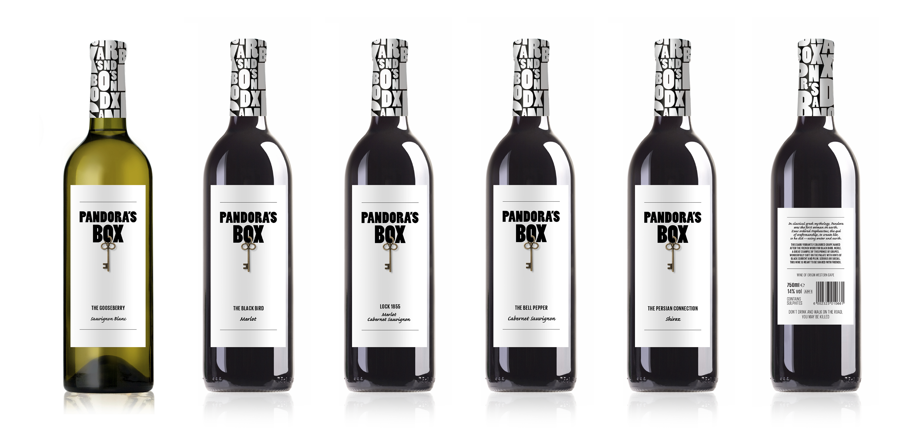 Brand identity development, label designs, packaging and promotional material created for Pandora's Box, a competitively priced, quality range of wines. Commissioned by Nicholson Smith Distributors. Brand created in 2014.