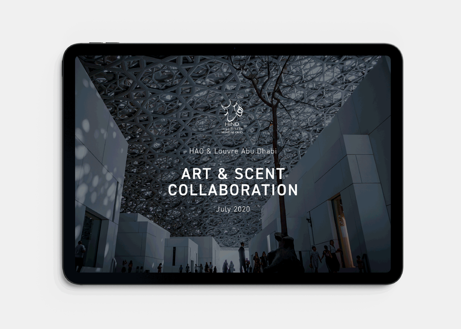 Art and scent activation between Hind Al Oud, a premium Emirati luxury fragrance brand and the Louvre Abu Dhabi, a universal art and civilization museum on Saadiyat Island, UAE. Created in collaboration with Ravinder Wilk and Mohamed Hilal Group. Completed in 2020.