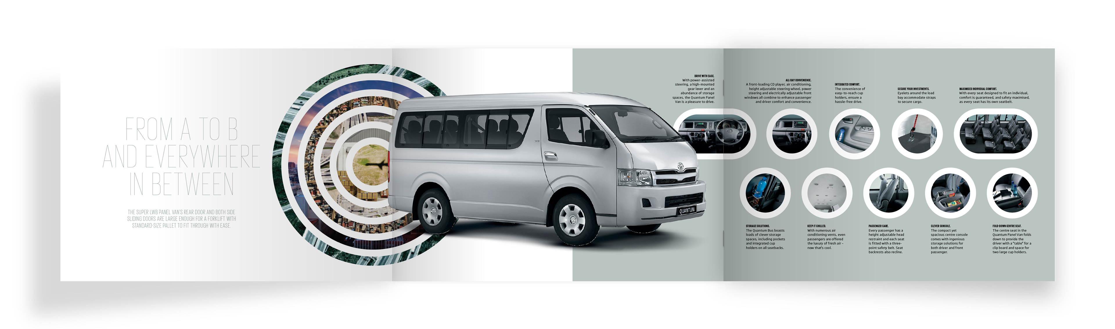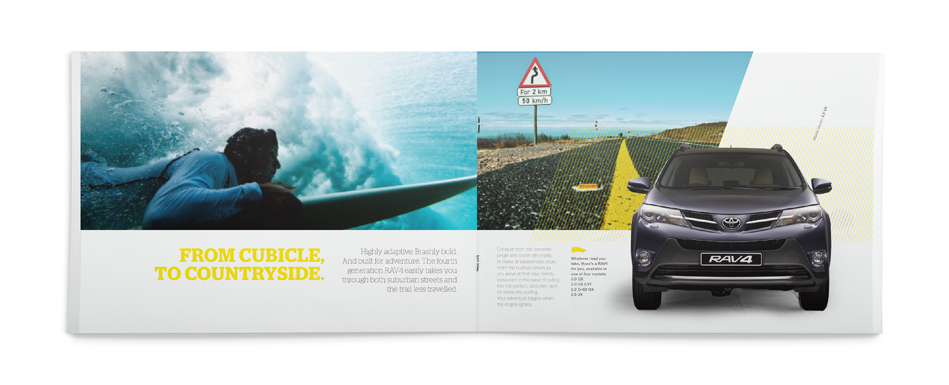 Three brochures developed for Toyota. Commissioned by Hello Computer. Completed in 2013.